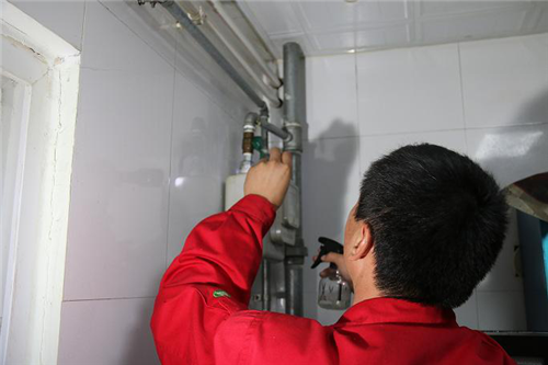 安檢人員檢查室內(nèi)燃氣管道