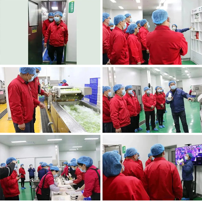 首先,一行人統(tǒng)一換上頭套、鞋套進入“風(fēng)淋室”清潔,隨后在食堂工作人員的帶領(lǐng)下依次進入中央廚房配餐中心。參觀中大家了解到,配餐中心所有食材均遵循“食以安為天”的原則,建立了嚴格的食品安全管控體系,統(tǒng)一招標(biāo)采購、統(tǒng)一管理、統(tǒng)一配制,保障了制作、配餐的可追溯性。新的中央廚房生產(chǎn)線采用多種先進生產(chǎn)設(shè)備,可實現(xiàn)原料入庫、加工、包裝、儲存、配送全程實時監(jiān)控、批批檢測,從而確保產(chǎn)品質(zhì)量和口感。全新的配餐系統(tǒng)和高標(biāo)準的加工配送體系,無不體現(xiàn)出硬件上選型上的“高精尖”和服務(wù)著陸上的“軟實力”,讓大家親眼見識到食品生產(chǎn)標(biāo)準化流程的同時,開闊了眼界,也從中深刻體會到“盡心盡力、盡職盡責(zé)”的深刻含義。